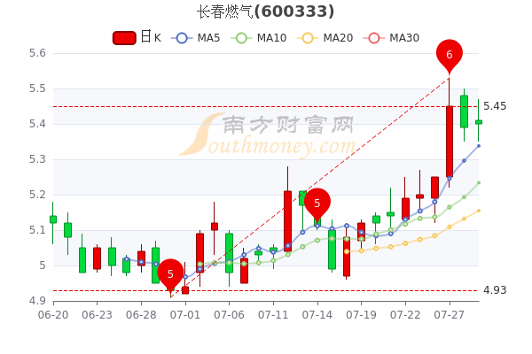 长春燃气(600333)涨0.19%,报5.4元,成交额4502.65万元,换手率1.37%,振幅0.186%。