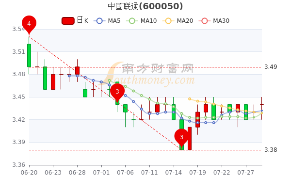 7月29日消息,中国联通7日内股价下跌0.29%,最新报3.44元,成交额2.48亿元。