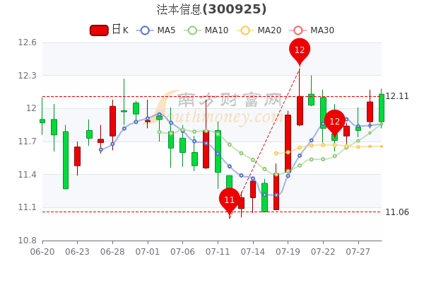 7月29日收盘消息,法本信息(300925)跌1.49%,报11.88元,成交额3996.53万元。
