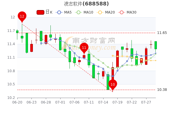 7月29日收盘消息,凌志软件开盘报价11.46元,收盘于11.29元,成交额1397.4万元。