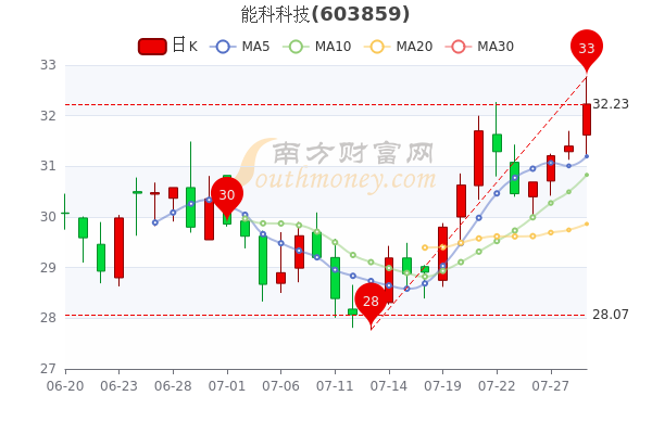 7月29日收盘消息,能科科技收盘于32.23元,涨2.64%。今年来涨幅下跌-21.94%,总市值为53.68亿元。