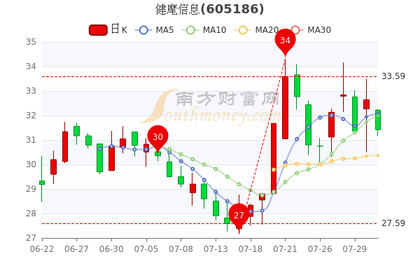 8月2日消息,健麾信息5日内股价上涨2.13%,今年来涨幅下跌-12.83%,最新报31.42元,市盈率为36.54。