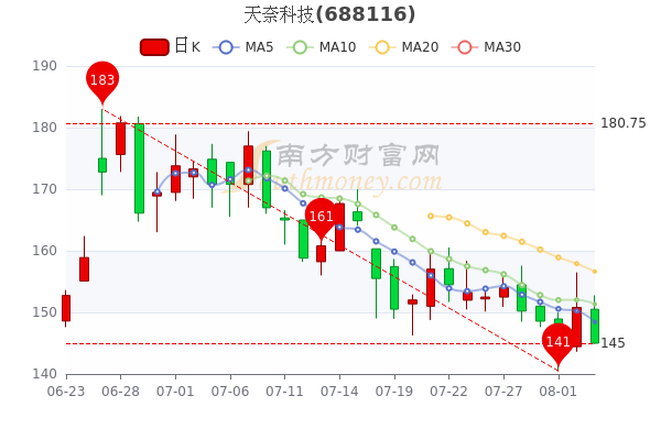天奈科技(688116)跌3.11%,报146.11元,成交额4.04亿元,换手率1.52%,振幅-3.846%。