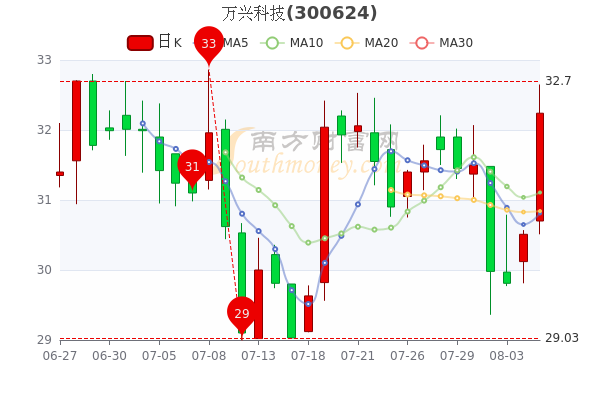 8月5日消息,万兴科技7日内股价上涨1.61%,截至收盘,该股报32.24元,涨5.67%,总市值为41.88亿元。