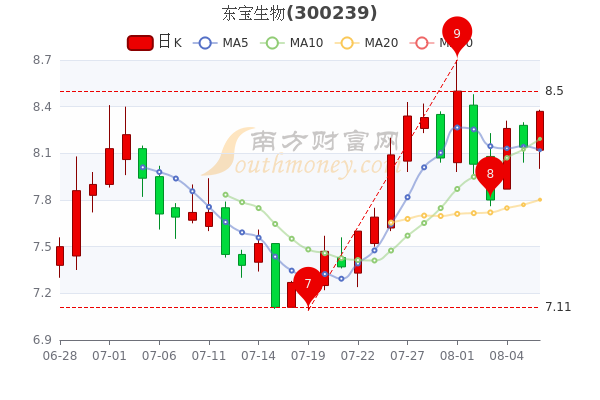 8月8日盘后消息,东宝生物最新报8.37元,涨2.83%。成交量13.51万手。