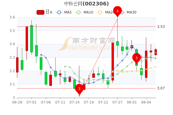 8月8日盘后消息,中科云网今年来涨幅下跌-2.39%,最新报3.35元。