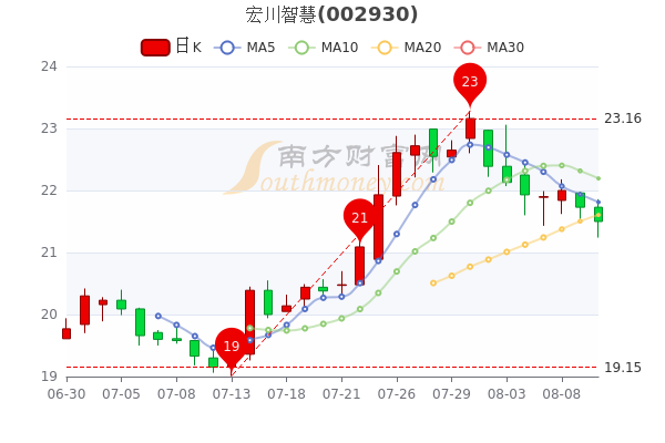 8月10日盘后最新消息,宏川智慧5日内股价下跌2.93%,截至下午3点收盘,该股报21.47元跌1.2% 。