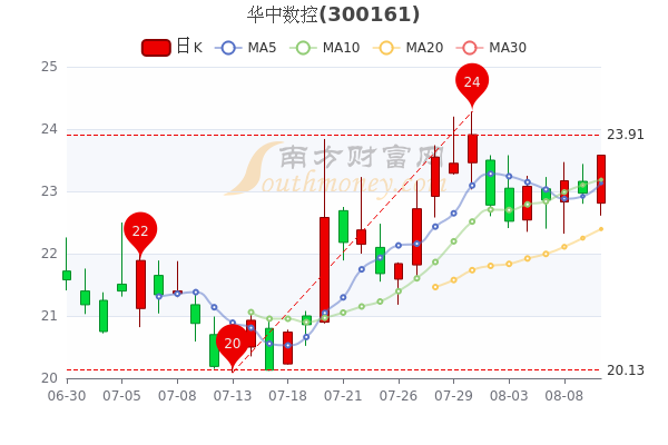 8月10日消息,华中数控开盘报价22.81元,收盘于23.58元,涨2.66%。当日最高价23.58元,市盈率141.88。