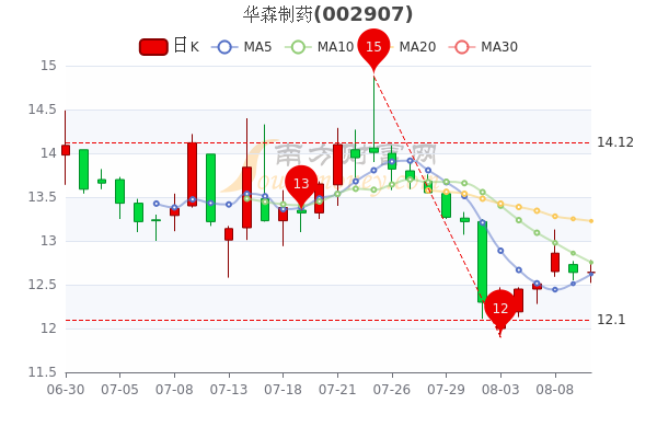 8月10日消息,华森制药7日内股价下跌4.59%,最新报12.57元,成交额1805.57万元。