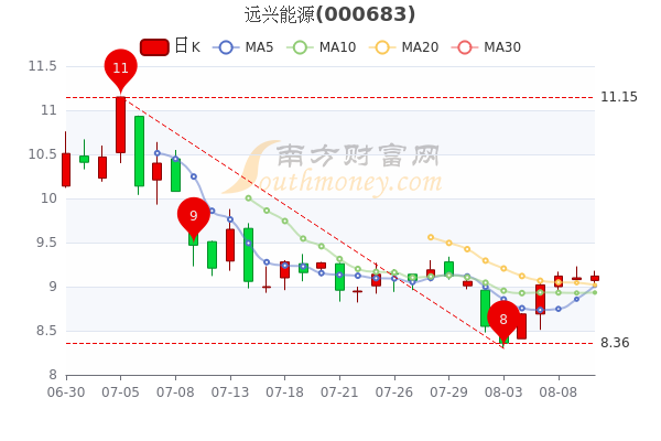 8月10日消息,远兴能源开盘报价9.07元,收盘于9.12元。5日内股价上涨8.33%,总市值为330.3亿元。