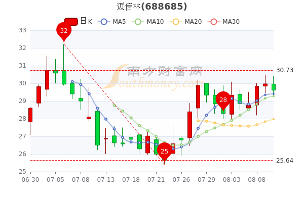 8月10日盘后消息,迈信林最新报价30元,涨0.1%,3日内股价上涨2.84%;今年来涨幅上涨8.21%,市盈率为58.06。