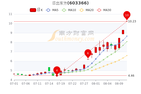 8月11日消息,日出东方开盘报价10.23元,收盘于10.23元,涨10%。今年来涨幅上涨48.48%,市盈率38.52。
