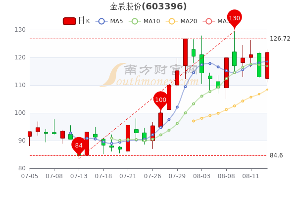 8月15日,金辰股份(603396)5日内股价上涨3.94%,今年来涨幅上涨9.11%,涨7.84%,最新报121.8元/股。