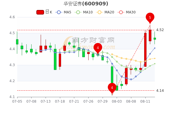 8月15日消息,华安证券开盘报价4.47元,收盘于4.49元,跌0.66%。当日最高价4.5元,最低达4.46元,总市值209.52亿。