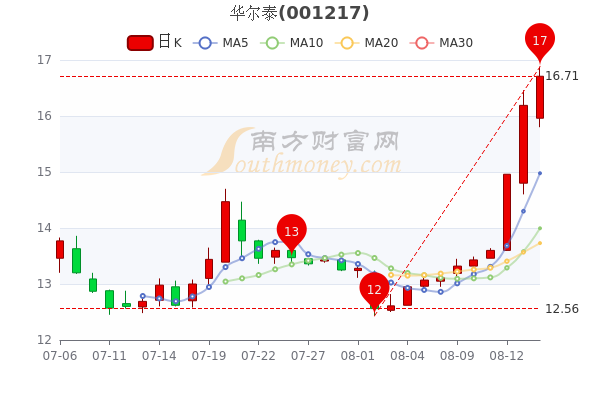 8月16日消息,华尔泰最新报价16.17元,3日内股价上涨10.47%;今年来涨幅下跌-14.78%,市盈率为10.85。