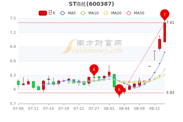 当前市值34.69亿。8月16日消息,ST海越开盘报7元,截至15点收盘,该股涨4.96%报7.41元。