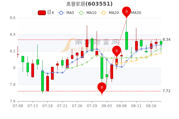8月18日晚间复盘消息,奥普家居(603551)跌0.96%,报8.23元,成交额1530.39万元。