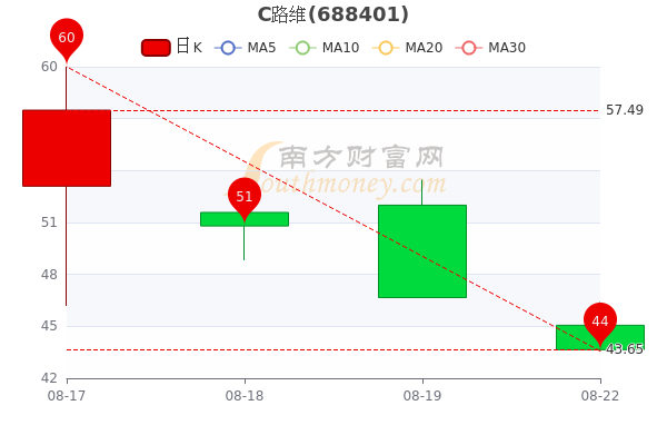 截至15点,C路维跌6.45%,股价报43.65元,成交8.08万股,成交金额3.6亿元,换手率28.38%,最新A股总市值达58.2亿元,A股流通市值12.42亿元。
