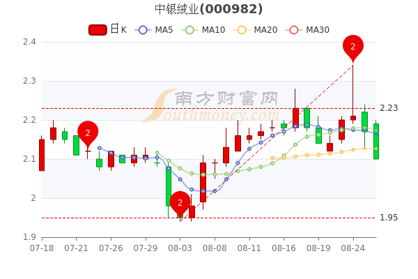 8月26日收盘最新消息,中银绒业昨收2.17元,截至15点收盘,该股跌3.23%报2.1元 。