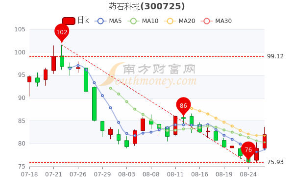 8月26日收盘消息,药石科技最新报价82元,涨3.8%,3日内股价上涨7.4%;今年来涨幅下跌-52.45%,市盈率为33.33。