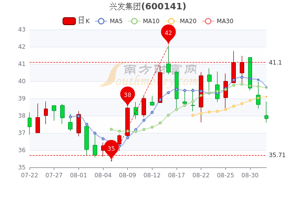 9月1日收盘消息,兴发集团(600141)跌2.12%,报37.83元,成交额6.82亿元。