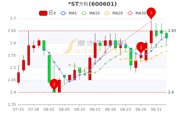 9月2日消息,ST方科开盘报价2.64元,收盘于2.61元,跌1.14%。当日最高价2.65元,市盈率-4.75。