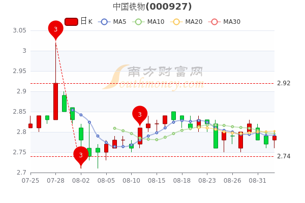 9月2日收盘消息,中国铁物开盘报价2.78元,收盘于2.79元。5日内股价下跌0.36%,总市值为168.8亿元。