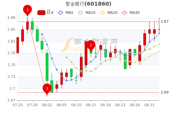 9月2日收盘消息,紫金银行最新报价2.85元;今年来涨幅下跌-17.54%,市盈率为6.95。