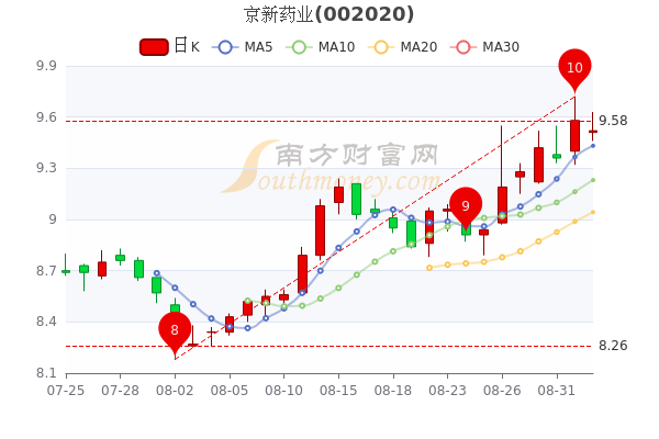 9月2日收盘消息,京新药业最新报价9.52元,3日内股价上涨1.68%,市盈率为12.69。