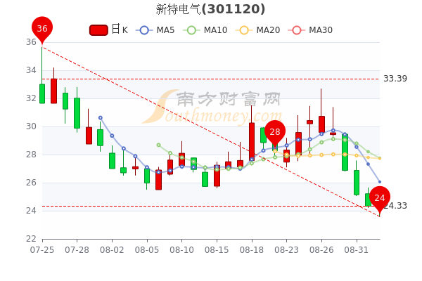 9月2日消息,新特电气开盘报价24.51元,收盘于24.38元,涨0.21%。当日最高价24.66元,市盈率54.18。