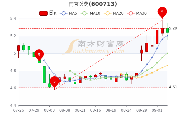 9月5日盘后消息,南京医药最新报5.23元,成交量13.62万手,总市值为68.58亿元。