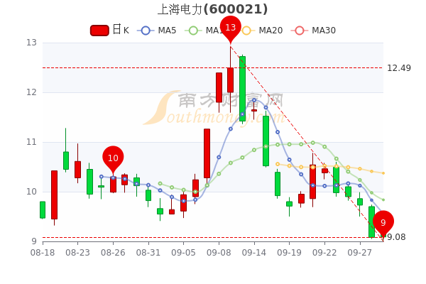 9月29日盘后消息,上海电力开盘报价9.17元,收盘于9.07元,成交额3.82亿元。