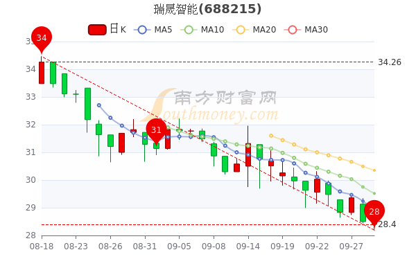 9月29日瑞晟智能3日内股价下跌3.38%,截至15点收盘,该股报28.75元涨0.88%,成交303.23万元,换手率0.66%。