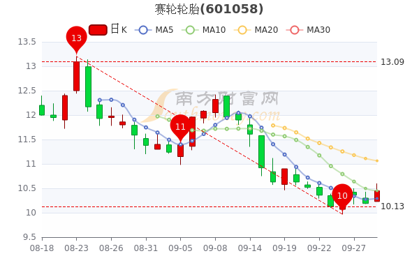 9月29日盘后消息,赛轮轮胎收盘于10.43元,涨2.36%。今年来涨幅下跌-38.09%,总市值为320.13亿元。