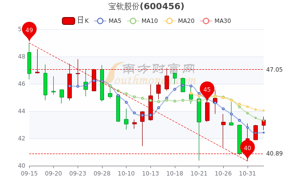 11月2日盘中消息,宝钛股份7日内股价下跌3.89%,最新涨0.91%,报42.860元,换手率0.72%。