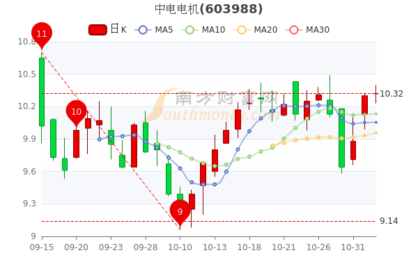 11月2日消息,中电电机最新报价10.340元,3日内股价上涨6.41%;今年来涨幅下跌-59.71%,市盈率为60.82。