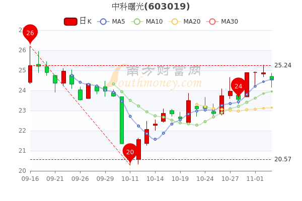 11月3日盘后消息,中科曙光最新报24.520元,跌1.45%。成交量2575.43万手,总市值为358.98亿元。