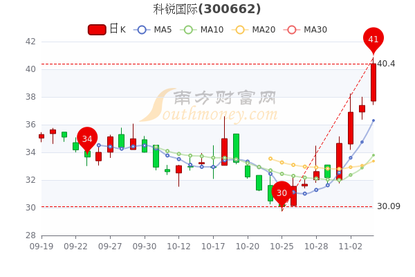 11月4日消息,科锐国际5日内股价上涨20.35%,该股最新报40.400元涨8.05%,成交2.96亿元,换手率3.81%。