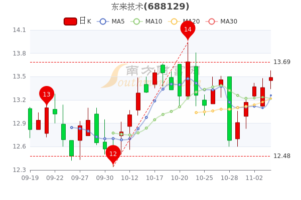 11月4日收盘消息,东来技术最新报价13.490元,涨0.97%,3日内股价上涨0.89%;今年来涨幅下跌-34.17%,市盈率为17.3。