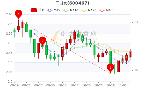 11月4日收盘消息,好当家今年来涨幅下跌-19.92%,最新报2.460元,成交额3825.1万元。