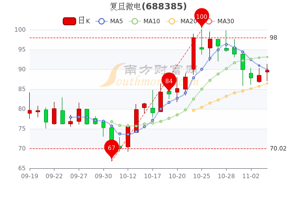 11月4日消息,复旦微电5日内股价下跌4.55%,该股最新报89.750元涨1.44%,成交6.75亿元,换手率2.43%。