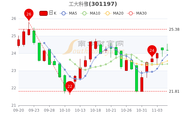 11月7日盘后消息,工大科雅5日内股价上涨2.89%,今年来涨幅下跌-44.46%,最新报24.180元,跌0.04%。