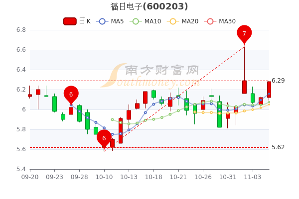 福日电子(600203)涨1.31%,报6.280元,成交额1.16亿元,换手率3.31%,振幅涨2.61%。