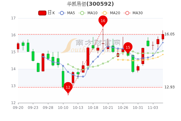 11月7日盘后消息,华凯易佰3日内股价上涨4.05%,最新报16.050元,成交额1.45亿元。