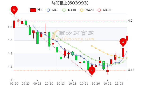 11月7日晚间复盘消息,洛阳钼业最新报价4.670元,3日内股价上涨7.28%,市盈率为19.46。