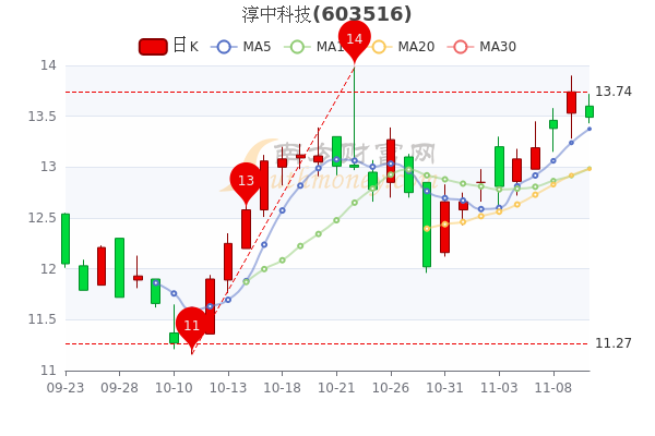 11月10日淳中科技(603516)开盘报13.6元,截至下午3点收盘,该股报13.490元跌1.82%,成交4075.83万元,换手率1.63%。