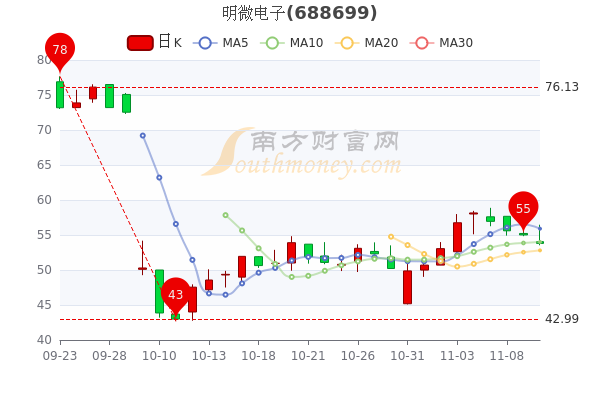 11月10日盘后消息,明微电子最新报53.800元,涨0.71%。成交量173.25万手,总市值为59.21亿元。