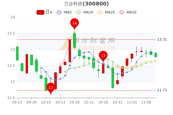 11月10日消息,力合科技收盘于12.770元,涨0.31%。7日内股价上涨0.47%,总市值为30.44亿元。