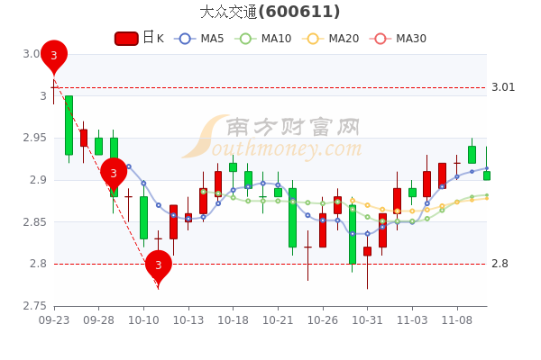 11月10日消息,大众交通5日内股价下跌0.34%,今年来涨幅下跌-21.38%,最新报2.900元,市盈率为20.71。