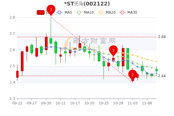 11月10日讯息,ST天马3日内股价上涨0.81%,市值为30亿元,涨1.23%,最新报2.470元。
